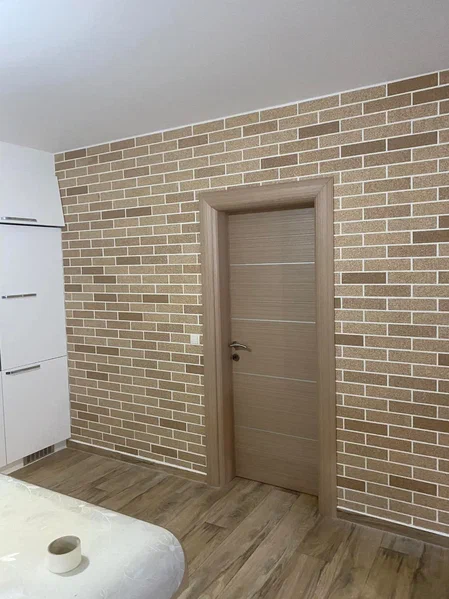 The sand-brown MIX-100 brick-pattern wall covering brings warmth to any space with its natural colors and light brown shades. It is ideal for creating a cozy atmosphere, whether in a residential space or a store.